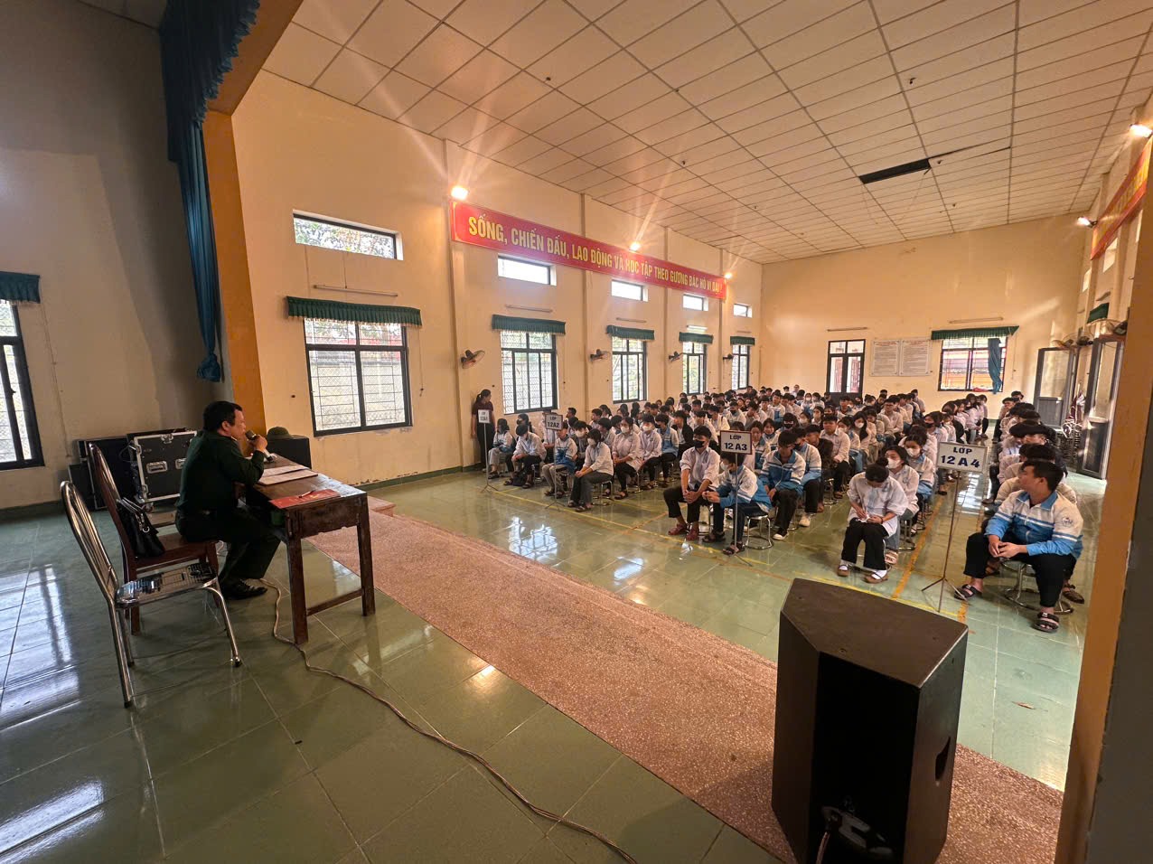 Phát biểu khai mạc chương trình, đại diện Trung tâm nhấn mạnh: hoạt động tuyên truyền tuyển sinh quân sự là một trong những nội dung quan trọng nhằm giúp học sinh hiểu rõ hơn về cơ hội học tập, rèn luyện trong môi trường Quân đội nhân dân Việt Nam, từ đó có thêm định hướng lựa chọn nghề nghiệp phù hợp với năng lực và nguyện vọng của bản thân.