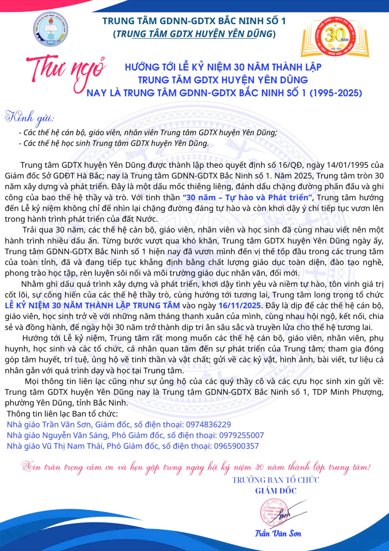 (NAY LÀ TRUNG TÂM GDNN-GDTX BẮC NINH SỐ 1 – 1995-2025)